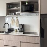 - Servicios Agua Caliente, Almohadas y mantas adicionales, Ascensor, Botiquín de primeros auxilios, Café, Cafetera, Cocina, Compactador de basura, Congelador, Copas de vino, Espacio para guardar la ropa, Estacionamiento de pago en las instalaciones, Extintor de incendios, Ganchos para la ropa, Gimnasio, Licuadora, Llegada autónoma, Mesa de comedor, Microondas, Persianas o cortinas opacas, Plancha, Platos y cubiertos, Refrigerador, Sábanas, Secadora de pelo, Servicio de limpieza: disponible por un costo adicional, TV, wifi, Zona de trabajo