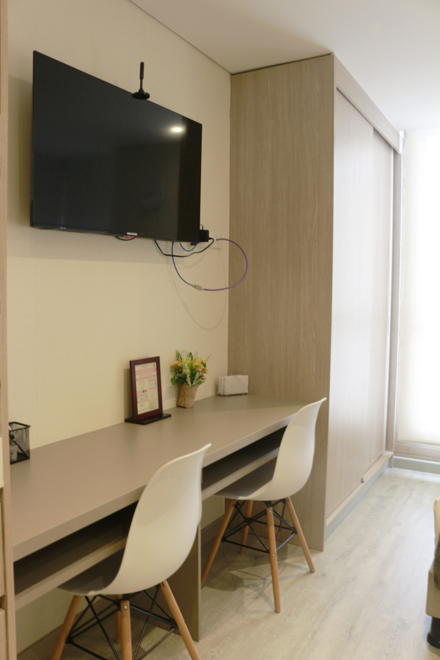 - Servicios Agua Caliente, Almohadas y mantas adicionales, Ascensor, Cocina, Compactador de basura, Congelador, Espacio para guardar la ropa, Estacionamiento de pago en las instalaciones, Ganchos para la ropa, Gimnasio, lavanderÃa, Microondas, Parqueadero bajo disponibilidad, Persianas o cortinas opacas, Platos y cubiertos, Refrigerador, Sábanas, TV, Utensilios básicos para cocinar, wifi, Zona de trabajo